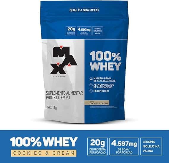 | Nome do produto | 100% Whey Refil (900g) – Cookies and Cream – Max Titanium |