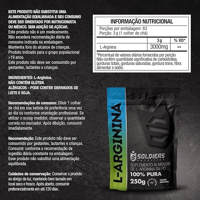 Arginina 250g – 100% Puro Importado – Soldiers Nutrition